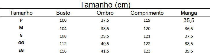 Comprimento da manga (cm) : meio